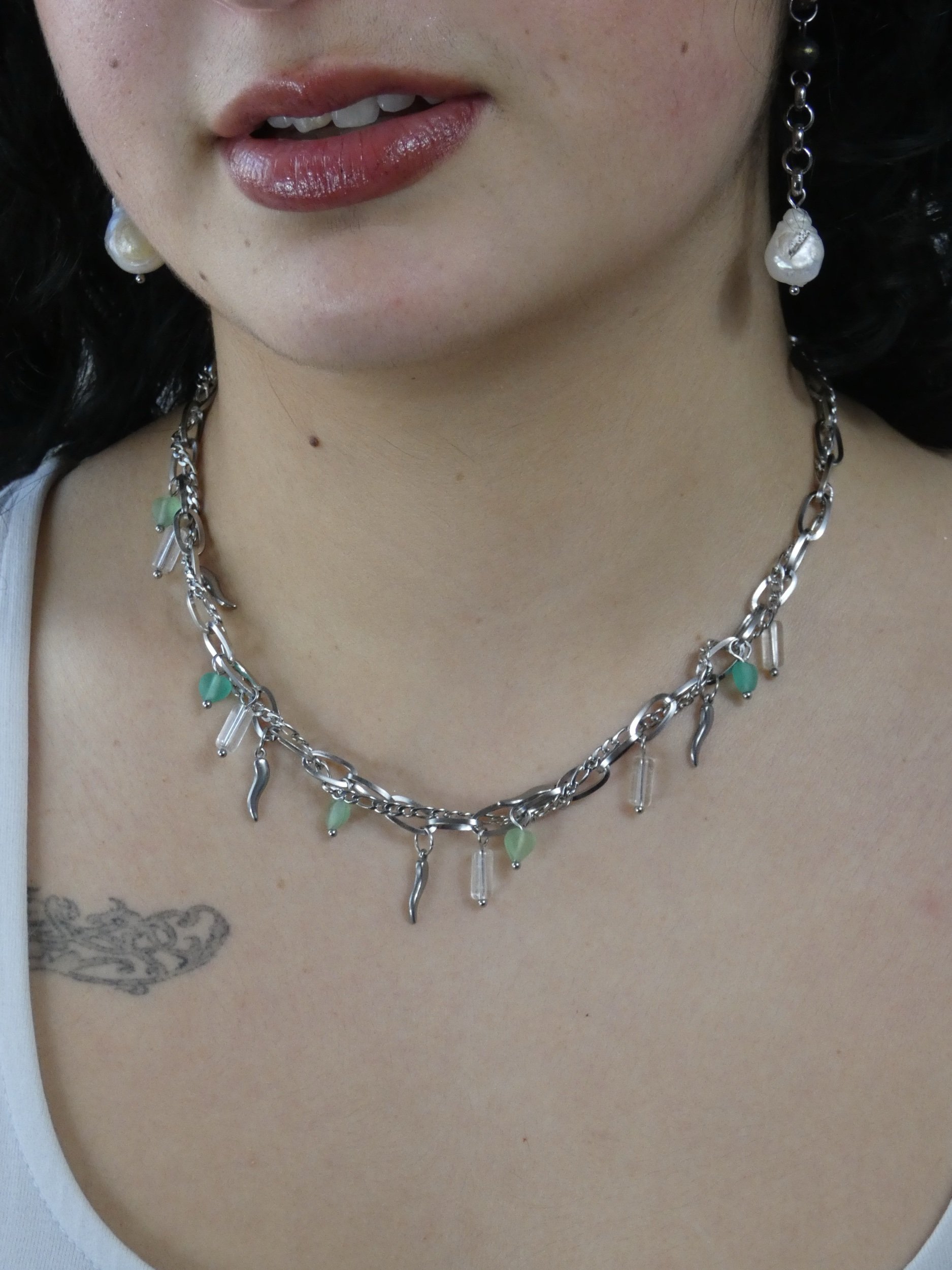 Pendentifs en verre et acier inoxydable